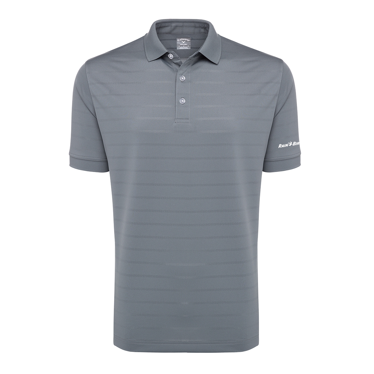 Callaway brand pique mesh stripe knit polo. Made from 5.3 oz. 100% polyester pique material. Moisture-wicking Opti-Dri technology and ventilated fabric to keep you cool and dry.
